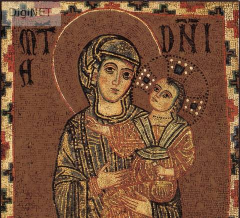 El 22 de abril de 1541 San Ignacio y sus primeros compañeros emitieron sus votos solemnes ante este mosaico. Reverso dividido.