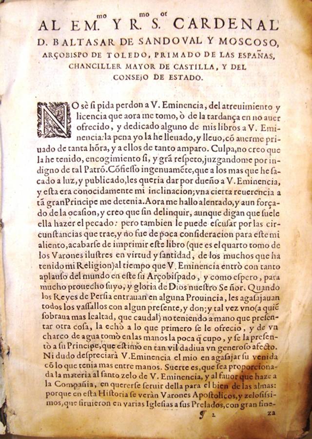Chrono-historia de la Compañia de Jesus, en la Prouincia de Toledo y elogios de sus uarones illustres, fundadores, bienhechores, fautores è hijos espirituales / escrita por el P. Bartholome Alcazar de la misma Compañia ... ; primera parte. -- En Madrid : por Juan Garcia Infançon, Impressor de la Santa Cruzada , 1710